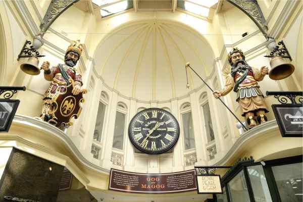 The famous Gog and Magog, 2 giant statues located inside the Royal Arcade, have been a notable feature since 1892. These statues chime every hour, drawing the attention of travellers and locals alike.